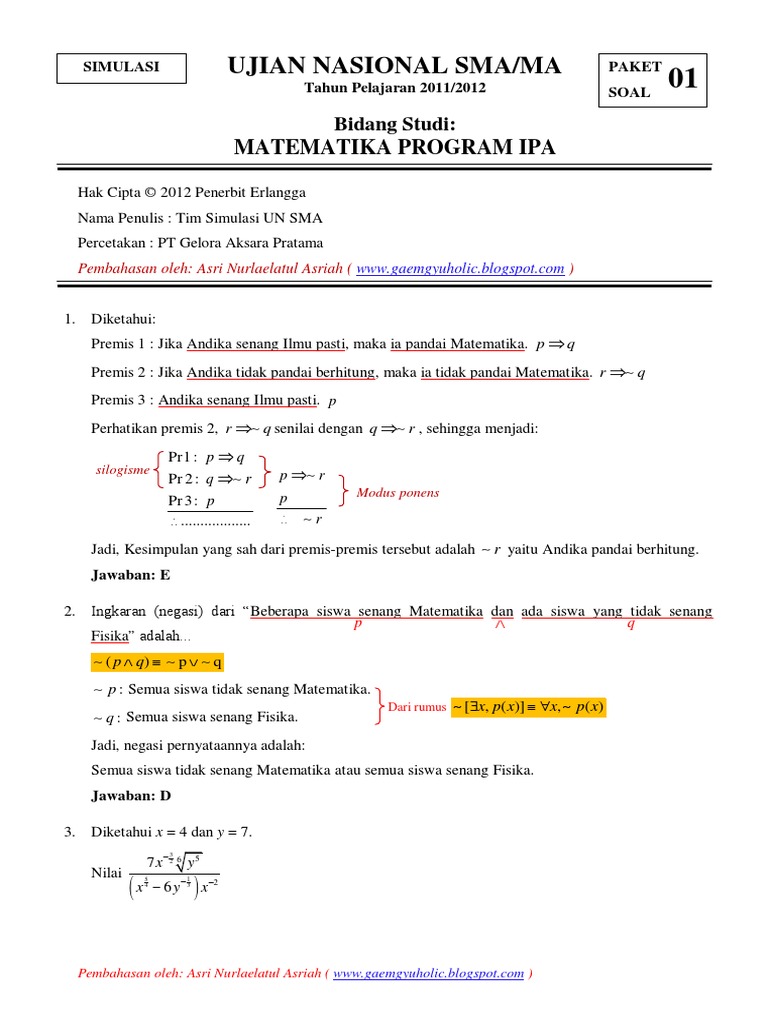 Kumpulan Soal Ujian Nasional Matematika Sma Kunci Jawaban Bali Teacher