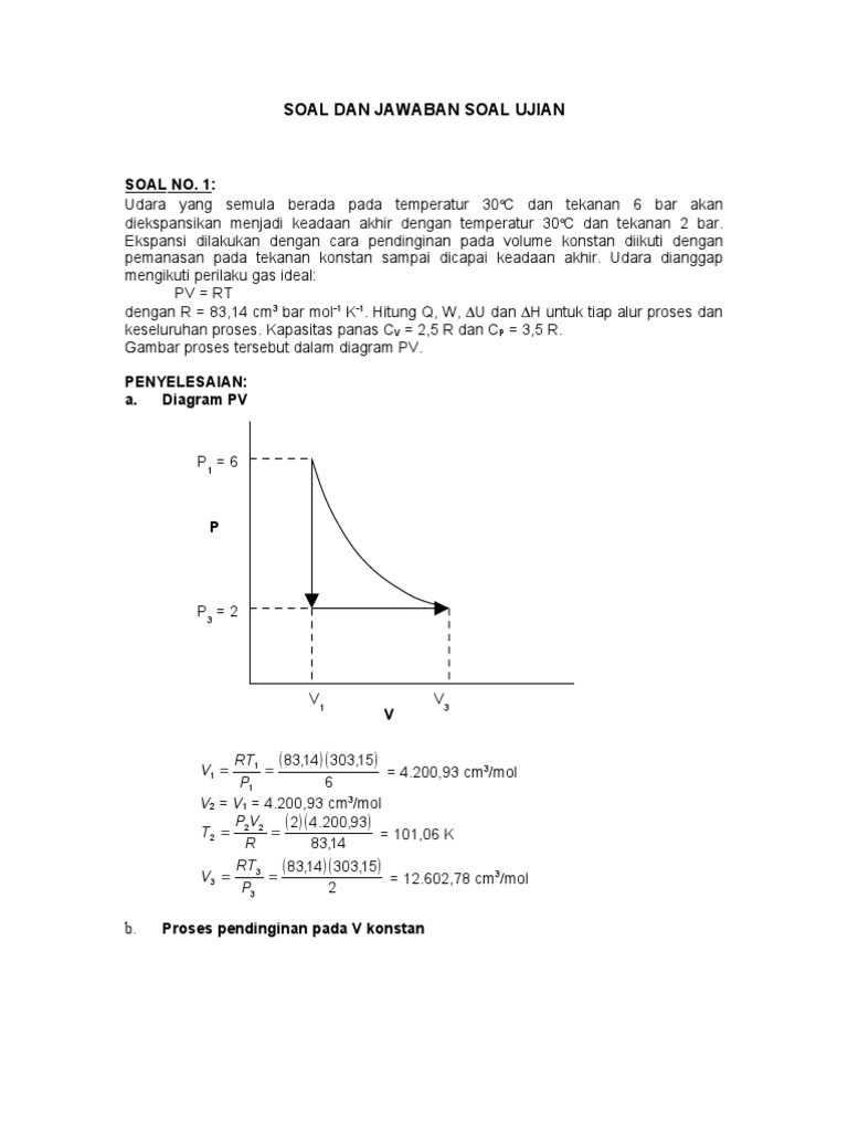 ΔU 3500 3000 500 joule. 1 Suatu gas memiliki volume awal 20 m 3 dipanaskan dengan kondisi isobaris hingga volume akhirnya menjadi 45 m 3. Soal dan Pembahasan Termodinamika Teknik Kimia Vanness Chapter 2 H.